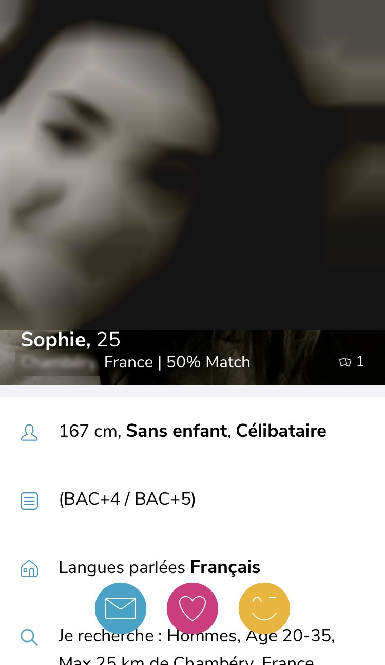 J’aime bien le design soigné de ce site et le fait qu’il y a beaucoup de moyens de communiquer. Par contre, je trouve qu’il n’y a pas assez de profils. Mais en même temps on sait qu’il y a une sélection à l’entrée.