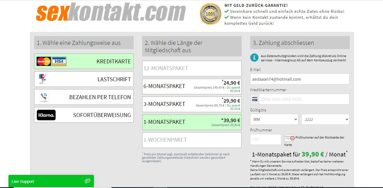 Alle Dating-Seiten - welche auch immer - bieten eine kostenlose Registrierung mit Zugang zu einigen Tools an. Diese Funktionen reichen jedoch recht schnell nicht mehr aus für eine angenehme und optimale Nutzung der entsprechenden Seite. Um von allen von Sexkontakt angebotenen Möglichkeiten profitieren zu können, mussten wir ein VIP-Abonnement abschließen. Als VIP-Mitglied hatten wir Zugang zu zahlreichen Vorteilen. Wir konnten z. B. Nachrichten beantworten, konnten unbegrenzt Gespräche führen, 40 Profile pro Tag bewerten, hatten Zugang zu allen Filtern, konnten sehen, wer uns seiner Liste hinzugefügt hat und konnten unser Besucherprofil anzeigen.